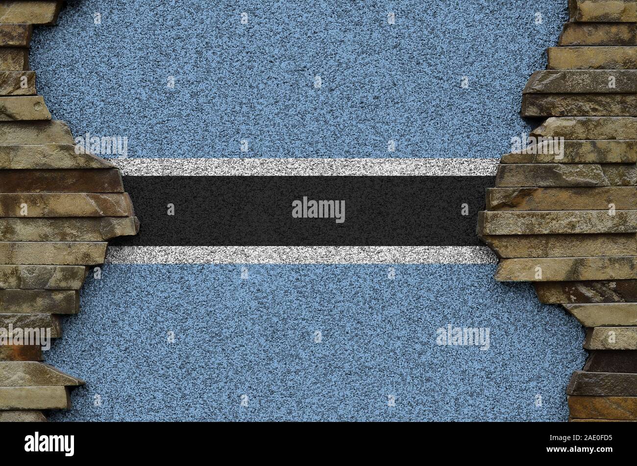 Botswana Flag Depicted In Paint Colors On Old Stone Wall